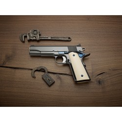 La sécurité du pouce et l'arrêt de la glissière en PVD bleu poli à haute brillance complètent la finition Charcoal Blue et créent un 1911 durable qui performera toujours et ne se démodera jamais. Le Charcoal Blue Prime est un pistolet que vous et votre famille pourrez chérir pendant des générations.