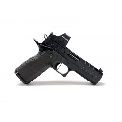 Le modèle EOS a vu le jour comme une version à cadre en acier du populaire Ares 4.25 et a été initialement conçu pour l'opérateur qui privilégie la durabilité au détriment du poids. Dès le début de son développement, nous avons constaté que les 170 grammes supplémentaires du cadre en acier avaient peu d'impact pour le port quotidien mais transformaient significativement la maniabilité. Ce poids additionnel, associé au portage, a valu à l’EOS le titre convoité de "Perfect Zero Pistol"