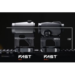 Le FAST™ Micro-S a été spécifiquement conçu pour les mini viseurs point rouge Aimpoint® CompM5s, CompM5b, et Duty RDS. Il place ces optiques "micro" plus hautes à la hauteur standard de 2,26" (5,74 cm) définie par la gamme FAST™, tout en restant entièrement compatible avec la ligne complète des montures FAST™ FTC (Flip-to-Center) pour magnifiers.