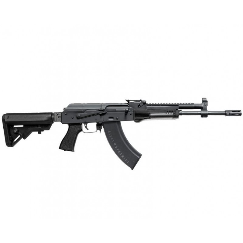 Notre RD706 avec notre nouvelle crosse arrière 1913 intègre un travail personnalisé sur la partie avant, incluant le bloc de gaz et guidon combinés réglables RD, le rail pour lunette UltiMAK et le cache-flamme RD Flash Hider. Ce design déplace le centre de gravité vers le corps, améliorant considérablement la maniabilité de ce fusil AK de longueur complète. La crosse arrière 1913 offre la plus grande variété d'options de crosses pliantes parmi tous les types de crosses.
