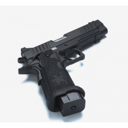 Le Staccato C est disponible avec une crosse compacte, tenant un chargeur de 15 cartouches, ou avec une crosse pleine taille, tenant un chargeur de 17 cartouches. Les deux crosses sont fines pour une dissimulation maximale.