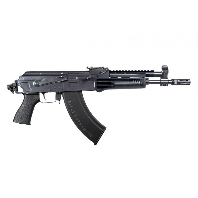 Le pistolet RD 704M dispose du récepteur fraisé Sharps Bros MB47-1913, ainsi que de notre travail personnalisé sur une crosse de 11,5 pouces utilisant le bloc gaz RD Tunable Combo Frontsight, le rail de lunette UltiMAK et le cache-flamme RD. Notre conception de la partie avant déplace le centre de gravité plus près du corps, améliorant ainsi considérablement la maniabilité de ce fusil AK de longueur standard. Grâce à l'interface 1913 à l'arrière, vous aurez d'innombrables options pour monter des sangles ou des adaptateurs de crosse si vous choisissez d'enregistrer votre pistolet comme un fusil à canon court.