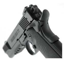 Pistolet emblématique 1911 en calibre .22 LR, arborant un design traditionnel avec toutes les caractéristiques typiques. La culasse, usinée CNC en aluminium (T7075), est accompagnée d'une sécurité de pouce et d'une sécurité beavertail permettant le port traditionnel en mode "armé et sécurisé". Pour une sécurité opérationnelle maximale, il dispose d'un arrêtoir de marteau. Les plaquettes de poignée en Santoprene texturé assurent une prise ferme. Un port d'inspection de la chambre permet de vérifier l'état de chargement, tandis que la visée three-dot, avec mire arrière réglable en dérive, facilite l'alignement. Un rail Picatinny pour le montage d'accessoires et un démontage facile sur le terrain sans nécessité d'une clé de bushing sont d'autres caractéristiques remarquables.Inclus avec le pistolet, une mallette et deux chargeurs en acier de 12 coups.