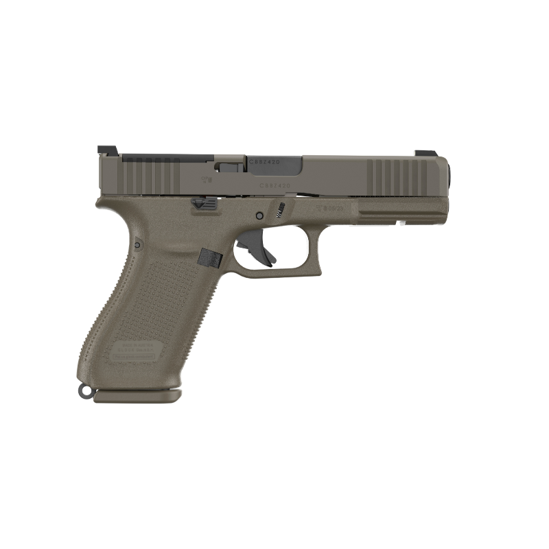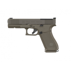 GLOCK présente ici l'édition Hunter du G20 MOS spécifique par sa couleur vert olive et ses équipements: