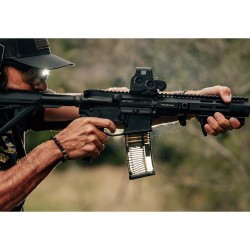 Comme les autres chargeurs de la famille GEN M3, le TMAG possède une géométrie interne similaire qui se traduit par une fiabilité inégalée lors du tir. Le suiveur anti-basculement à quatre voies est associé à un ressort en acier inoxydable durable, conforme aux normes USGI pour une plus grande fiabilité. Le corps du chargeur est clairement marqué pour indiquer le nombre approximatif de cartouches lorsqu'il est inséré dans un magasin, et la matrice de points au stylo-peinture permet au tireur d'apposer des marquages personnalisés. La plaque de chargeur du TMAG permet également la compatibilité avec la gamme complète d'accessoires de plaque de chargeur PMAG® AR/M4 GEN M3.