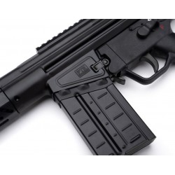 La détente de la carabine a un poids de 9-10 lbs (4-4,5 kg), offrant une expérience de tir fiable et constante. Elle est livrée avec un chargeur en aluminium de 20 cartouches, assurant une capacité suffisante en munitions.