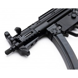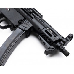 Construit avec un garde-main en aluminium anodisé Mil-Spec M-LOK® PTR HG1 et un protege-doigts, le 9RS offre une prise en main légère mais robuste. Le rail Picatinny en acier de 11,3 cm offre une plateforme polyvalente pour monter des optiques et accessoires, tandis que la prise ergonomique traditionnelle avec rainures pour les doigts assure une prise confortable. Le système de dégagement double, avec à la fois des releases à palettes et des boutons-poussoirs pour le chargeur, permet des changements de chargeur rapides et efficaces.