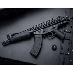 Découvrez le 32P PDWR en 7,62x39mm, une fusion de conception compacte et de puissance de feu impressionnante. Conçu pour ceux qui privilégient la taille sans compromettre la force, ce modèle présente un canon lourd de 21,6 cm (8,5 pouces), soigneusement soulagé des contraintes et fileté pour une compatibilité optimale avec les accessoires. Au cœur de ce fusil se trouve un système de recul retardé par galet garantissant une action fluide et fiable.