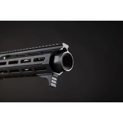 Ce canon de 21,6 cm (8,5 pouces) offre des vitesses plus élevées, tandis que le système CQB joue un rôle clé dans la réduction de la taille globale. Le support CQB ajoute seulement 13,65 cm (5,375 pouces) à l’extrémité du boîtier et s’étend jusqu’à 25,4 cm (10 pouces) pour un confort optimal de l’opérateur. Notre groupe de culasse propriétaire ainsi que nos options de buffer et de ressort garantissent une durabilité extrême et un cycle de fonctionnement fluide.