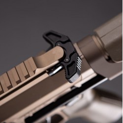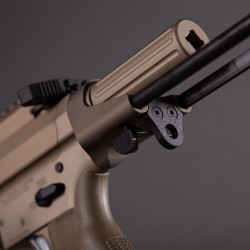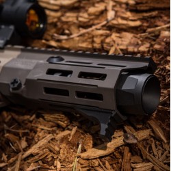 Équipé du compensateur HATEBRAKE™ de Maxim Defense, le PDX™ réduit considérablement le recul, diminue la signature lumineuse et dirige les gaz et ondes de choc vers l’avant, améliorant ainsi l’efficacité et le confort de tir.