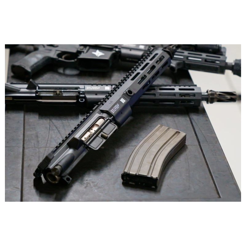 L’ensemble upper receiver est fourni complet, incluant le dispositif de bouche, la poignée de chargement et le groupe culasse (BCG). Conçu pour s’adapter aux récepteurs inférieurs d’AR-15 en configuration pistolet ou SBR, cet upper garantit fiabilité, durabilité et performances optimales.