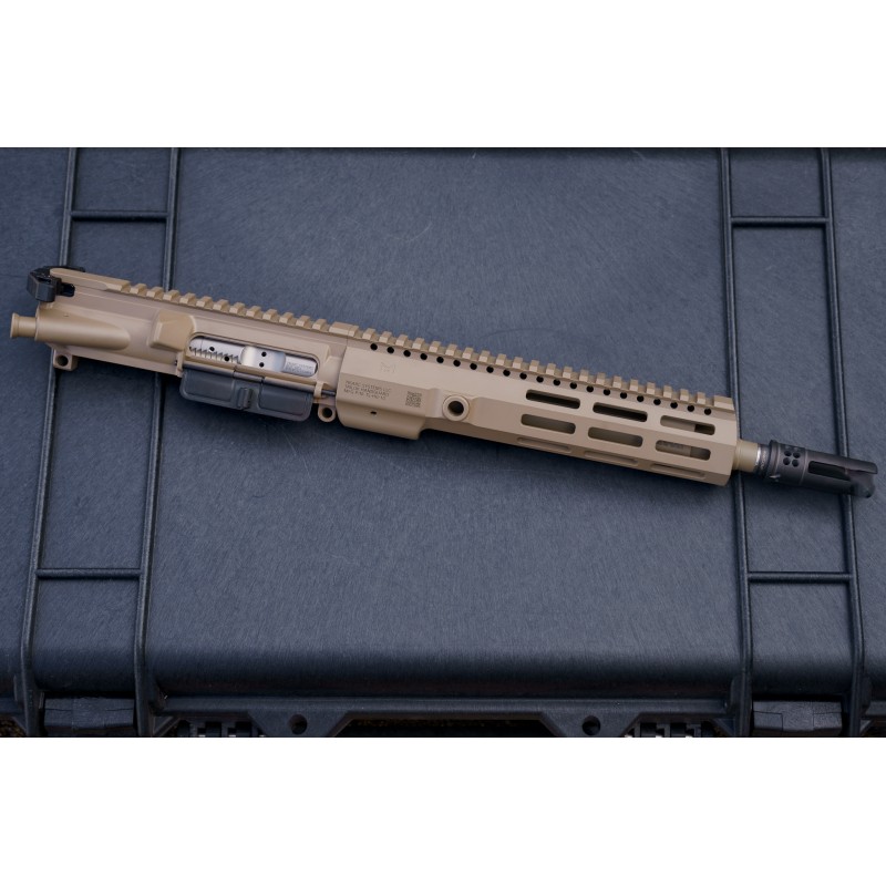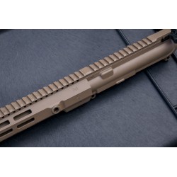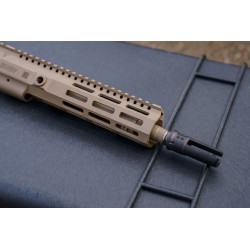 Cet ensemble upper receiver est fourni complet, incluant le dispositif de bouche, la poignée de chargement et le groupe culasse (BCG). Il est recouvert de Cerakote HIR-235 Coyote Tan, offrant une réduction de signature thermique et un camouflage optimisé contre la vision nocturne de 3ᵉ génération. Le canon et le bloc de gaz bénéficient d’un revêtement Cerakote High Temp C Series pour une résistance accrue aux températures élevées.