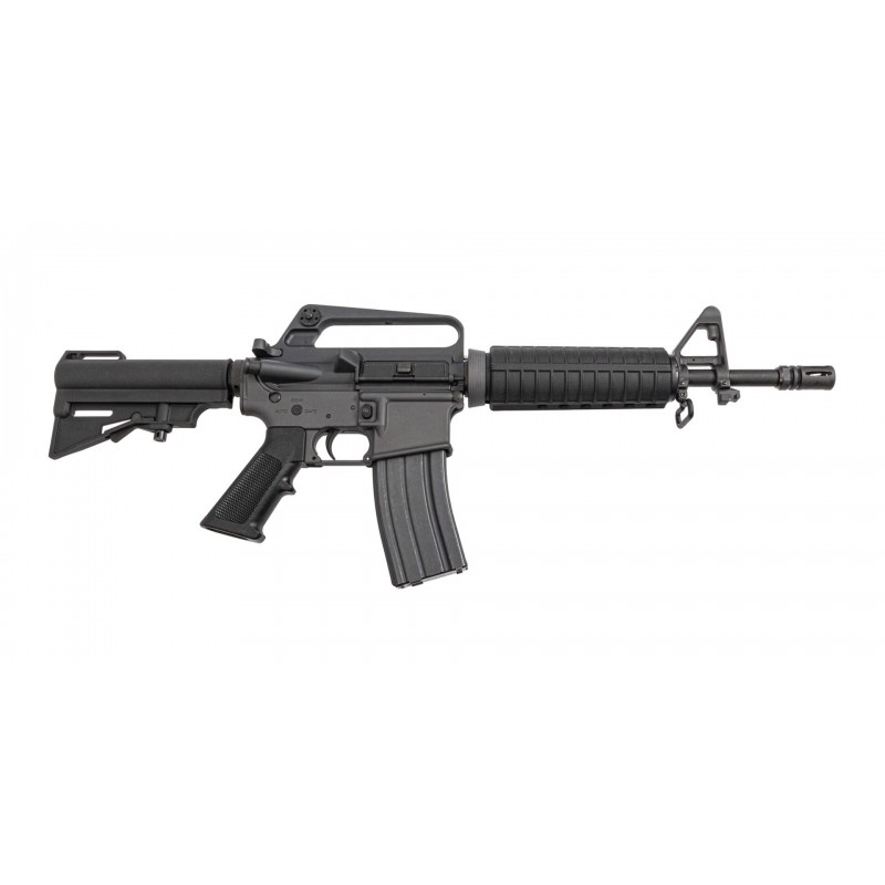 Carabine style 733 gris. Léger, simple (K.I.S.S.), et résolument rétro. Parfait comme base pour vos montages de type clone, ou à utiliser tel quel. Le lower H&R COTS M16A2 gris, associé à un upper H&R C7, évoque parfaitement la période de transition entre les carabines basées sur le M16A1 et l’adoption du M4.