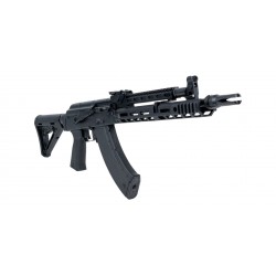 L’ensemble est équipé d’un rail Soviet Arms M-LOK de 11,5" avec tube à gaz raillé, permettant la fixation d’accessoires tactiques modernes. La détente ALG AKT Enhanced assure un départ net et rapide, idéal pour un usage dynamique.