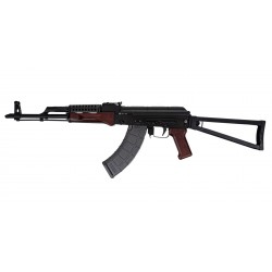 Ce modèle est équipé de la détente haut de gamme ALG AKT Enhanced avec la gâchette incurvée Lightning Bow, d’un levier de sûreté étendu, et d’un rail latéral pour le montage d’une optique. Le mobilier comprend une crosse métallique triangulaire repliable de type soviétique, une poignée et un garde-main inférieur en bois Redwood, ainsi qu’un garde-main supérieur perforé en métal de type cheese grater, permettant une meilleure dissipation thermique.