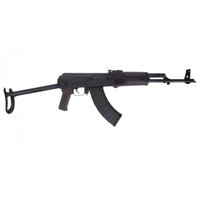 Le canon en acier 4150 est traité par nitruration pour garantir précision et durabilité, et est monté par pression dans un trunnion avant forgé, assurant la longévité typique des AK. Le boîtier de culasse en acier trempé de 1 mm comporte une détente de type militaire à crochet simple. Le trunnion avant et le porte-culasse sont gravés "GF3" pour identifier ce modèle forgé. L’arme est équipée d’un garde-main supérieur et inférieur en polymère classique couleur prune, d’une poignée assortie et d’une crosse métallique repliable sous l’arme. L’arme est livrée avec un chargeur de 30 coups (là où la loi l’autorise).