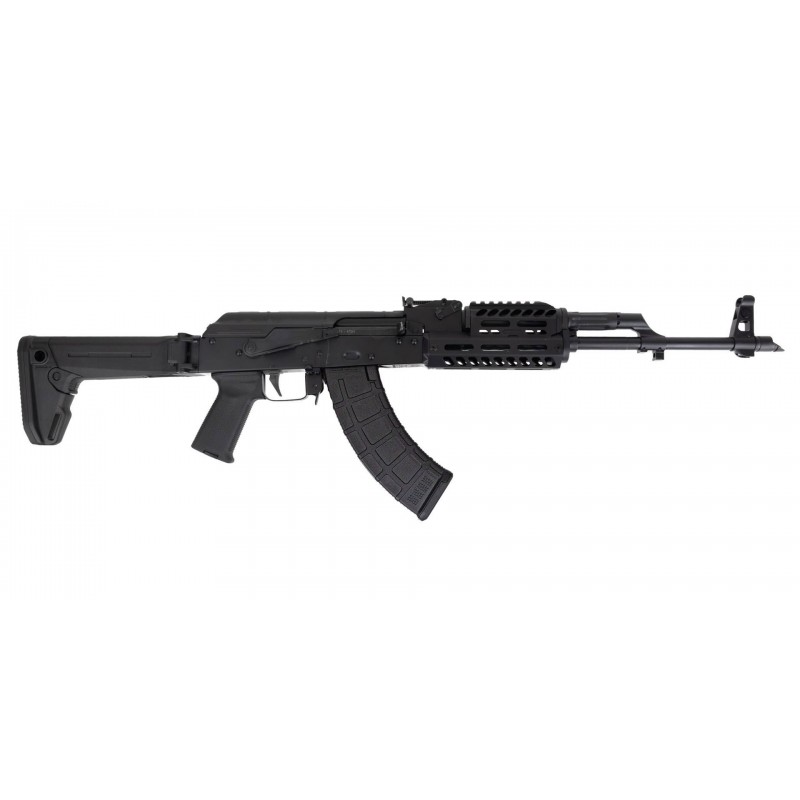Ce modèle est équipé d’un garde-main en aluminium renforcé compatible M-LOK, avec rail Picatinny intégré, d’une poignée pistolet Magpul AK noire et d’une crosse Magpul Zhukov repliable et réglable, idéale pour les applications tactiques.