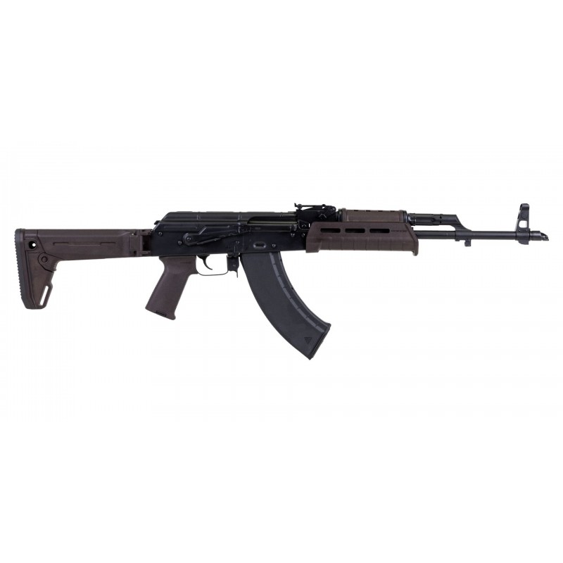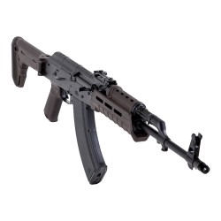 Cette version est équipée d’un mobilier Magpul complet de couleur prune (Plum) : garde-main AK-47, poignée pistolet, et crosse Zhukov repliable. L’arme est livrée avec un chargeur de 30 coups, là où la législation le permet.