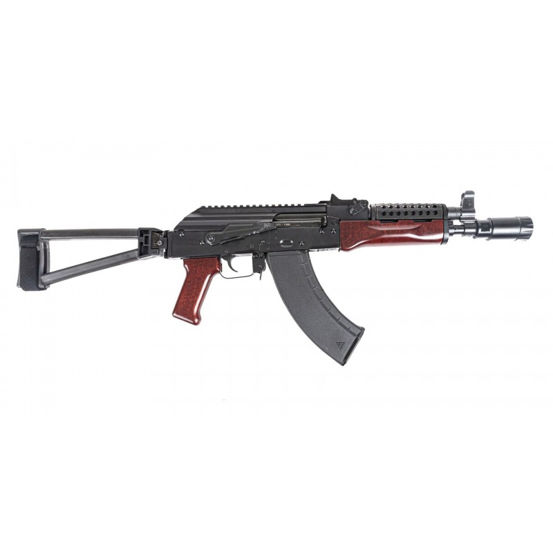 Le pistolet est équipé d’un garde-main supérieur « cheese grater » en métal, d’un garde-main inférieur et d’une poignée en bois rouge Red Wood, complété par un brace triangulaire latéral repliable. Le chargeur de 30 coups est fourni lorsque la loi locale l’autorise.