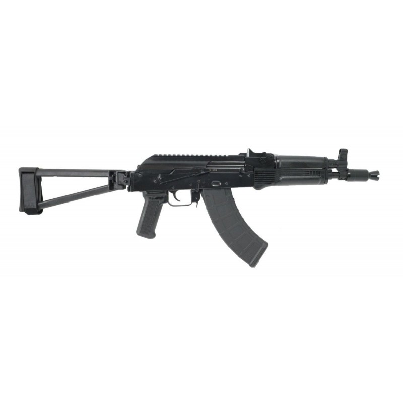 Le canon en acier 4150 est nitruré pour améliorer la durabilité et la précision, et est emmanché dans un trunnion avant forgé à froid assurant la longévité réputée des AK. Le boîtier de culasse en acier de 1 mm intègre une détente de type militaire (mil-spec) avec un crochet simple, et dispose d’un rail latéral pour montage d’accessoires.