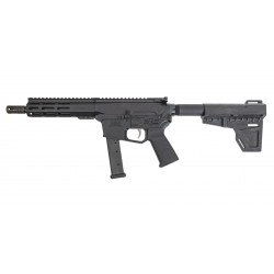 Canon de 8" en acier chrome-molybdène 4150V, chambré en 9 mm (9x19), avec un pas de rayure de 1:10. Finition nitrurée pour une meilleure durabilité. Équipé d’un garde-main PSA hexagonal de 7" en montage flottant (free-float), avec rail Picatinny intégral et fixation M-Lok, ainsi qu’un cache-flamme type A2 "birdcage".