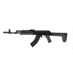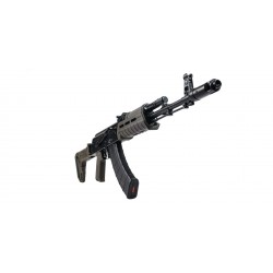Configuré avec un frein de bouche, bloc de gaz et guidon de style AK-74