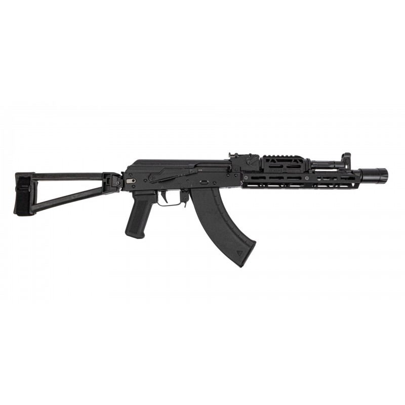 Ce modèle pistolet permet aux puristes de recréer l’expérience d’un AK à canon court. Une fois les formalités administratives effectuées (demande de tax stamp auprès de l’ATF), il est possible de remplacer le brace par une crosse repliable en retirant simplement une goupille et son adaptateur.