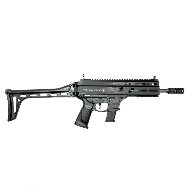 Voici la version la plus courte du célèbre STRIBOG ; Le SP9 A3G mesure seulement 600 mm avec sa crosse et son compensateur. Toutes les pièces internes ont été conçues pour assurer un fonctionnement fiable, même avec un canon court. Le SP9 A3G est équipé d'un canon fileté avec un embout de protection, utilisant un pas de vis de 1/2×28. Une crosse pliante en FRN peut être remplacée par un tube de crosse type AR. Pour un boîtier aussi petit, Grand Power a réussi à conserver un grand nombre de rails d'accessoires aux positions 12 et 6 heures, ainsi que des fentes M-LOK aux positions 3 et 9 heures. Cela permet à l'utilisateur de monter des points rouges, des lumières, des lasers, des poignées et d'autres accessoires.