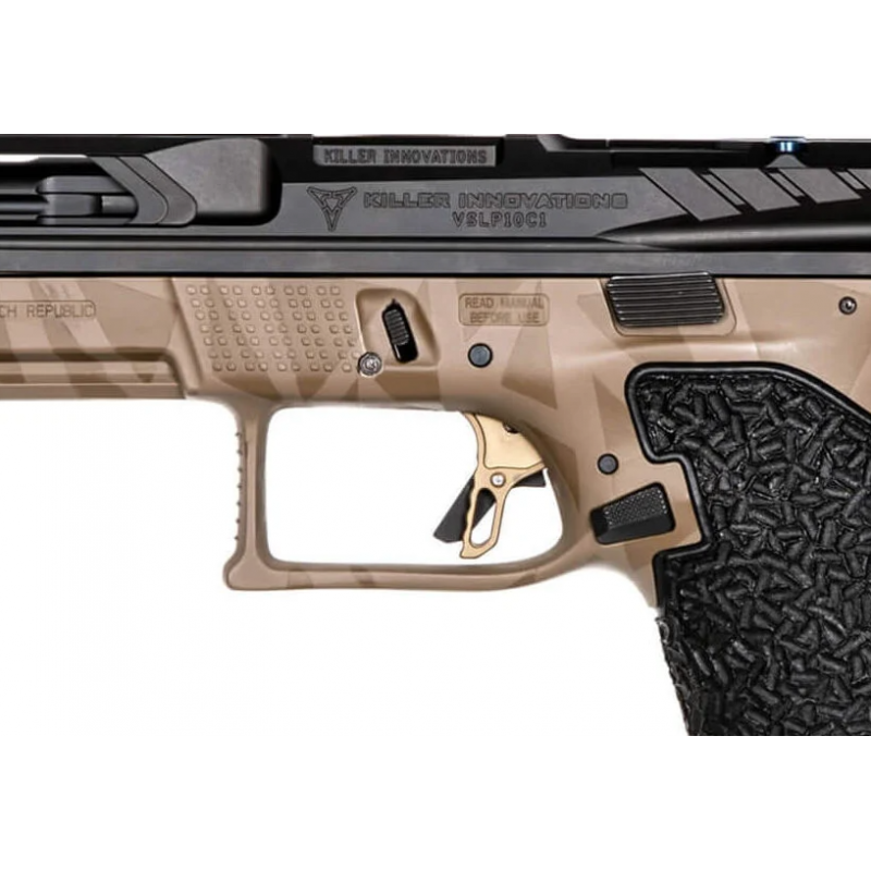 La queue de détente Velocity Defense Trigger Shoe pour CZ P10 offre une course sensiblement plus fluide, avec une réduction notable du "creep" (course morte) et un reset positif, le tout sans compromettre la sécurité ni la fiabilité. La forme plate de la détente assure une surface stable et texturée pour une meilleure accroche et un meilleur contrôle du tir.