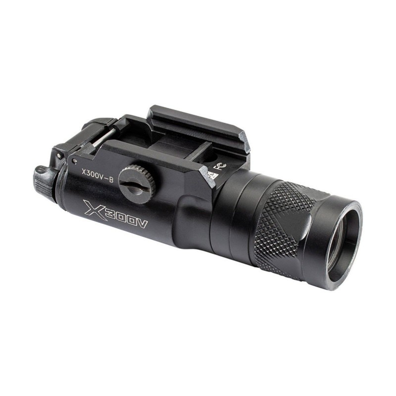 La lampe X300V-B avec le montage à vis T-Slot est une lampe d’arme compacte pour pistolets et armes d'épaule qui possède une LED blanche puissante de 350 lumens et une LED infrarouge dans une unité scellée. En mode lumière blanche, la LED anti-recul génère un faisceau tactique polyvalent avec une bonne portée et une bonne vision périphérique avec suffisamment de puissance pour submerger temporairement la vision d'un agresseur dans l'obscurité. En mode infrarouge, la led de 120 milliwatts produit un faisceau invisible à l'œil nu pour une utilisation lors d'opérations furtives impliquant des dispositifs de vision nocturne (aucun filtre requis). La commutation entre les deux modes est réalisée via une bague de sélection autobloquante sans regard, même à la volée. La X300V-B possède le montage à vis T-Slot.