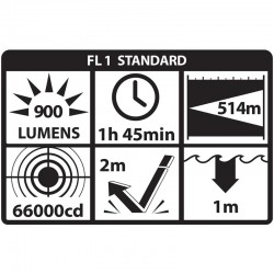 La lampe tactique pour arme TWM-30-T Turbo de Nightstick est dotée d'un faisceau turbo de 900 lumens avec 66 000 candelas pour une distance de rayonnement de 514 mètres. Elle est optimisée pour les portées étendues, son intensité concentrée projette la puissance nécessaire pour surmonter les barrières photoniques telles que les vitres teintées et les phares venant en sens inverse.