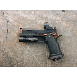 Construit sur la plateforme éprouvée H-PRO, le modèle Ascension H-Custom a subi une transformation complète. Il présente des serrations de préhension avant et arrière agressives, des fenêtres sur la culasse et un moletage de précision – tous conçus pour améliorer à la fois l’esthétique et les performances.