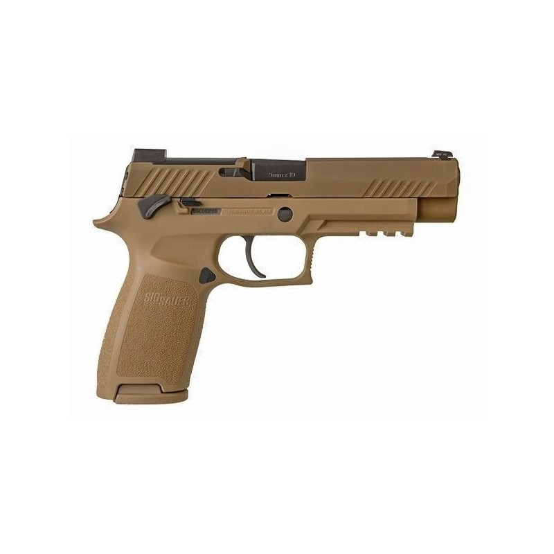 Le pistolet est doté d'une glissière en acier inoxydable revêtue de PVD coyote et de la coupe optique identique à celle spécifiée dans le contrat MHS, ainsi que de commandes noires, à l'instar des pistolets actuellement expédiés à l'armée américaine; il est équipé d'un guidon SIGLITE et d'une hausse Night Sight.